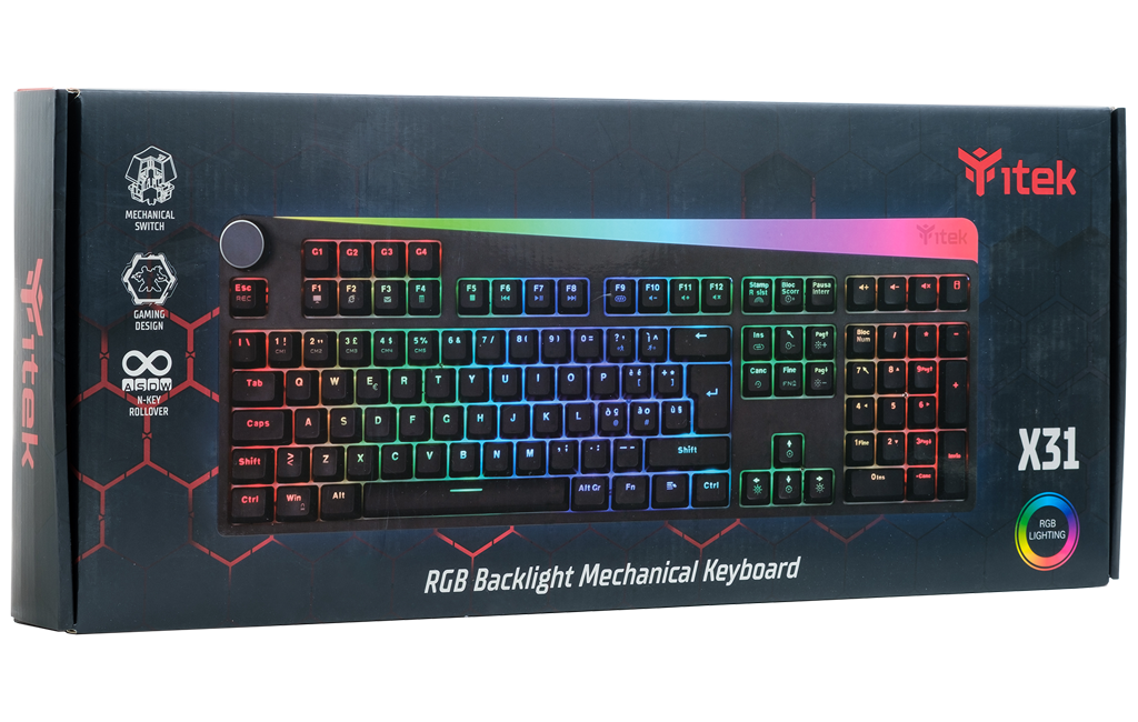 Itek X31 è una tastiera per gamers e progamers dotata di switch meccanici OUTEMU blu molto performanti.