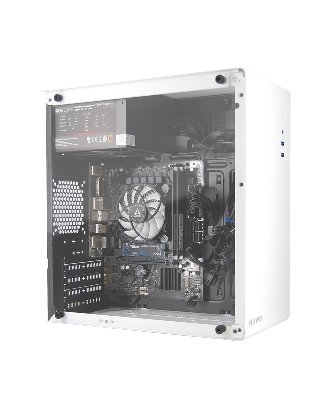 • Case: NUWO Eguera A113 Micro ATX Bianco con pannello laterale in vetro temperato